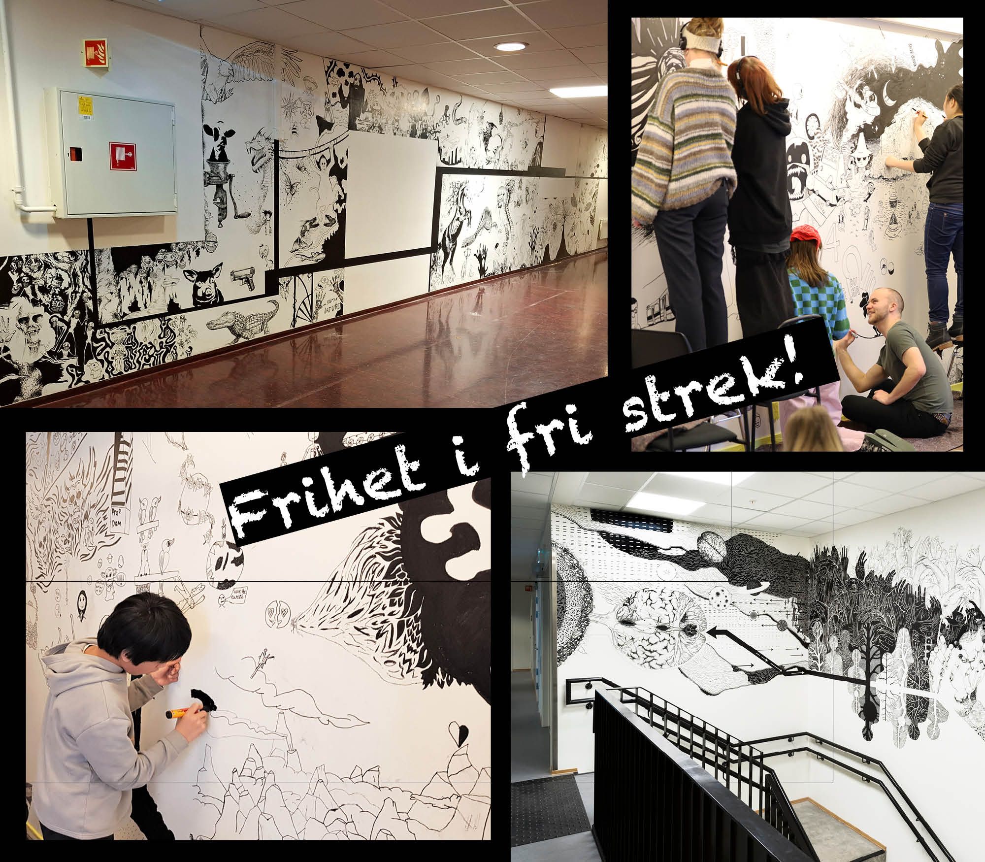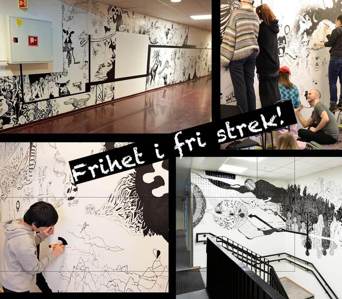 Skolene samarbeider med kunstner Mona Brekke. Tre dager skal Mona og elevene tegne sammen med frihet som tema. Resultatet blir en vegg på skolen som elevene selv har tegnet.